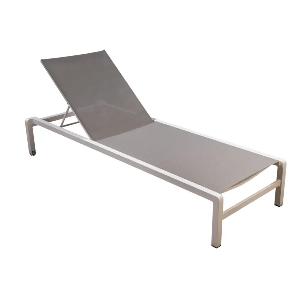 Het strakke aluminium frame gecombineerd met de ademende bekleding zorgt voor optimaal comfort, zelfs op warme dagen. Deze lounger is niet alleen een plek om te relaxen, maar ook een stijlvolle toevoeging aan je terras. Perfect voor zonliefhebbers die comfort en design willen combineren zonder concessies.